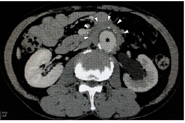 (※)大動脈(矢頭)大動脈周囲線維化 厚さ12mm